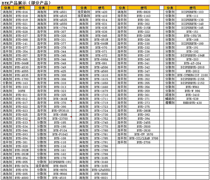 畢克化學(xué)的客戶包括涂料和印刷油墨,塑料,膠粘劑和密封膠以及清潔劑,地坪涂料和潤滑劑的制造商。畢克助劑還成功用于建材化學(xué)品,石油和天然氣以及鑄造行業(yè)。